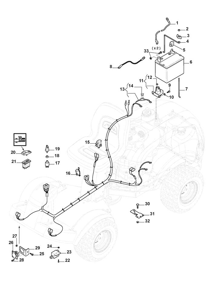 Electrical parts assembly details for Stiga Park 340 PWX (2F6130621/S18) 2019 model