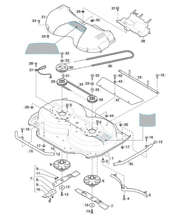 Transmission & Blades assembly details for Stiga Stiga Deck Villa 95 Combi EL 2D2709521-S16 2018 model