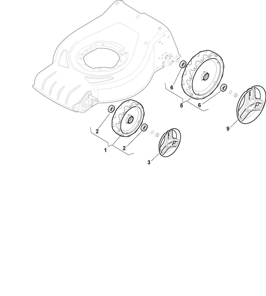 Wheels and hub caps assembly details for Stiga Combi 48 Q MAE (295485868/ST1) 2021 model