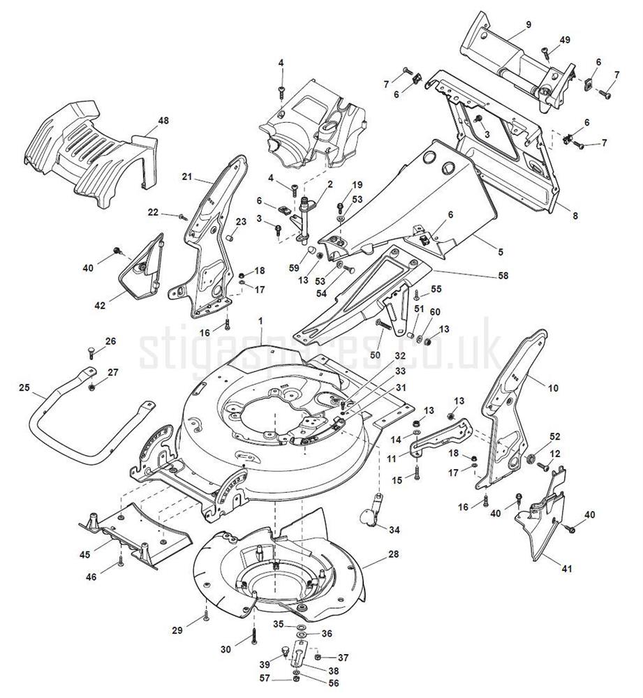 CHASSIS assembly details for Stiga EXCEL 55 SQB BBC (B&S 675 EX) 290558028 2014 model