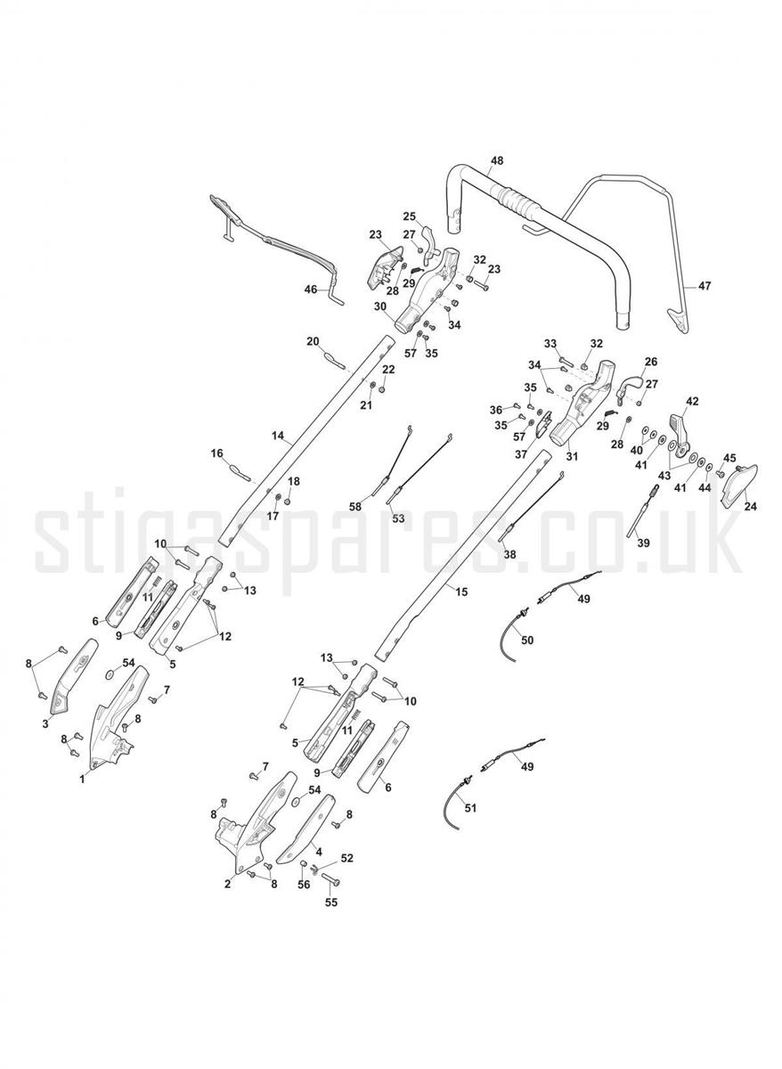 Chassis-Handle, Upper Part assembly details for Stiga TWINCLIP 50 SV H 294513038 2016 model