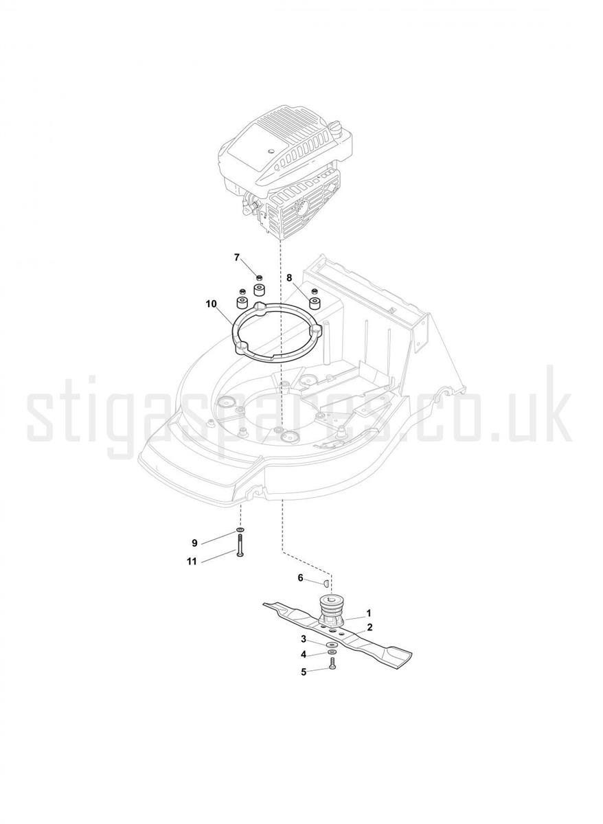 Blade assembly details for Stiga TURBO POWER 53 S B 292166028 2017 model