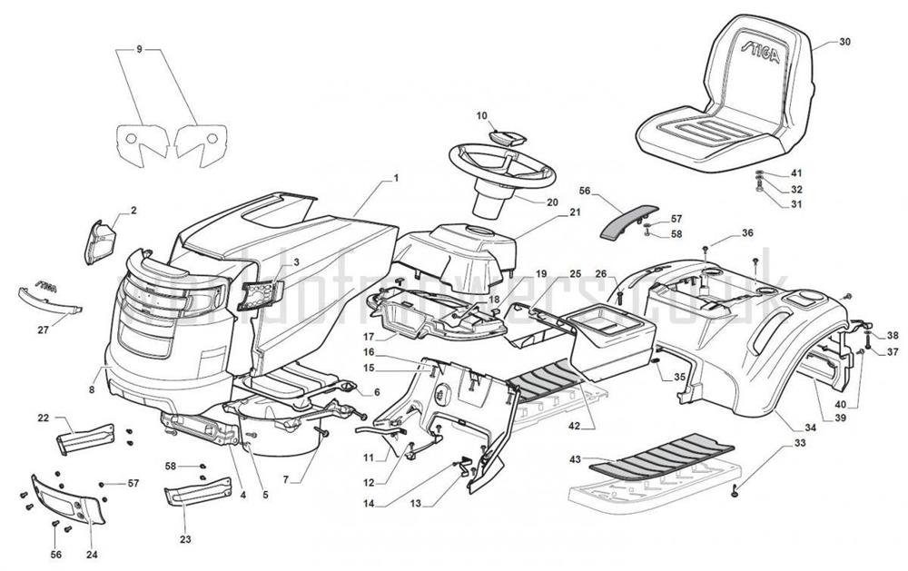 BODYWORK assembly details for Stiga 2T0520281/14 TORNADO 3098 (B&S 3130) 2014 model