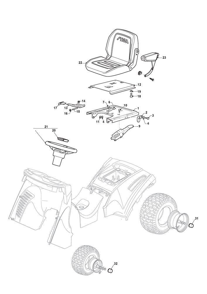 SEAT & STEERING WHEEL assembly details for Stiga Estate Pro 9122 HWS (2T1515281/ST1) 2019 model