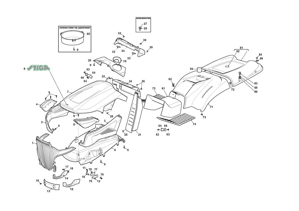 BODY assembly details for Stiga Estate 6102 HW (2T0970281/ST1P 2020 model